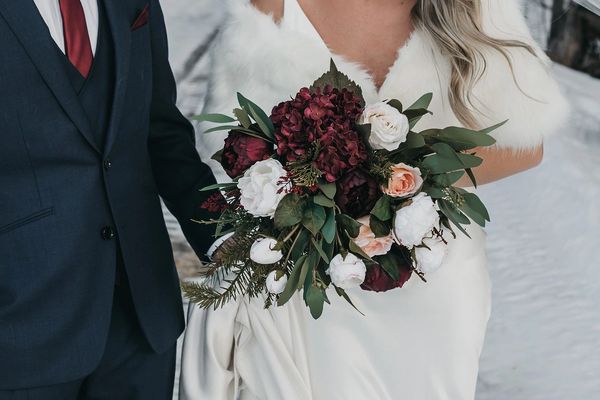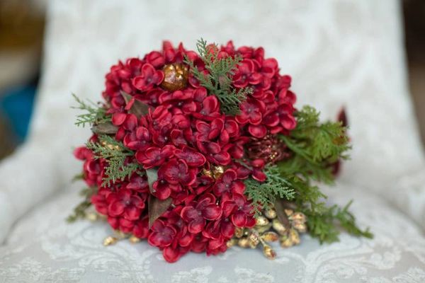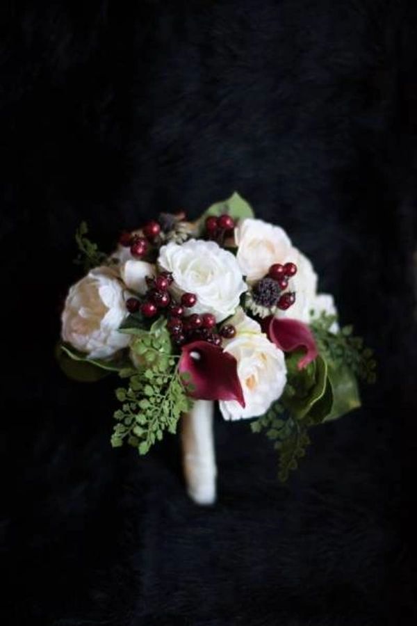 wedding flowers in any combination of deep greens, purples, plums, reds,