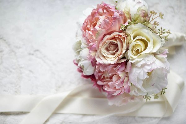 The free-form bouquet of wedding flowers is larger than all of the other bouquet styles and is loosely arranged for an airy, whimsical feel. It is round but not completely, and instead of cascading downward over the bride's hands, it can cascade upward, downward and/or out to the sides of the bouquet.